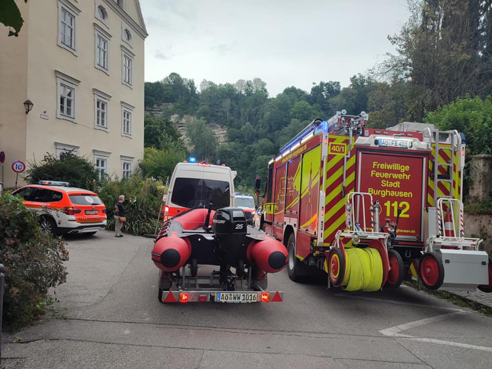 Kat-Schutz Wasser, Wasserwacht Altötting-Neuötting, Wasserwacht Töging-Winhöring und Kreiswasserwacht Altötting nach Burghausen an die Salzach alarmiert. Die Polizei leitete eine Vermisstensuche im