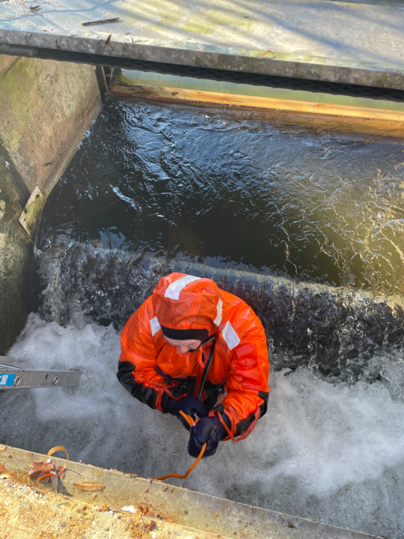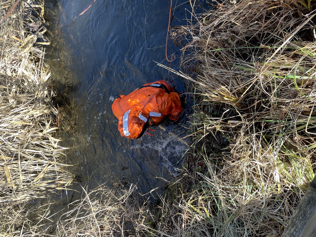 Am Freitag bemerkten unsere Mitglieder dass der Auslauf, des Badesees durch Treibgut fast komplett verklaust war. Einer unserer Wasserretter säuberte, im Überlebensanzug, den Auslauf und das dazugehörige Rohr.
