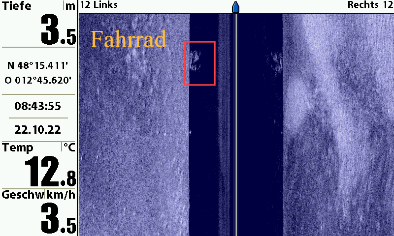 Auf unserem Motorrettungsboot 99/1 ist ein sogenanntes Side Scan Sonar Fest montiert.